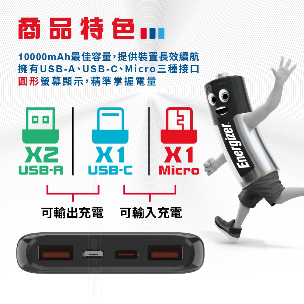 Energizer 勁量 迅閃 UE10040PQ 22.5W 快充 行動電源 黑色 10000mAh 37Wh 國際大廠 總代理公司貨