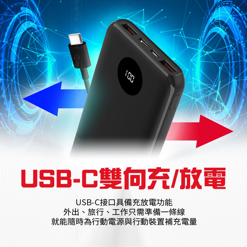 👍TYPE-C接口雙向功能,可充電可放電。