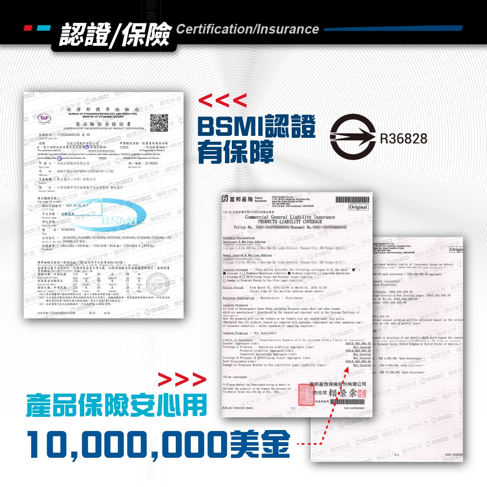 👍多重電路防護機制,智慧充電辨識,保障使用安全,千萬產險。
