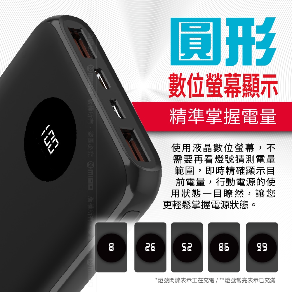 👍數位螢幕顯示,可精準掌握電量。