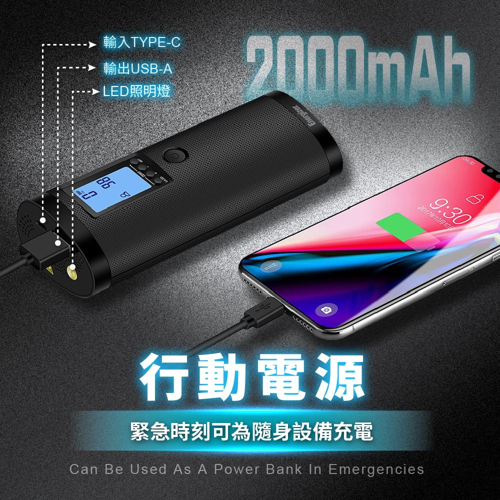 👍輕巧便攜,陪伴騎行旅途無負擔。一機多用,打氣、照明、充電。