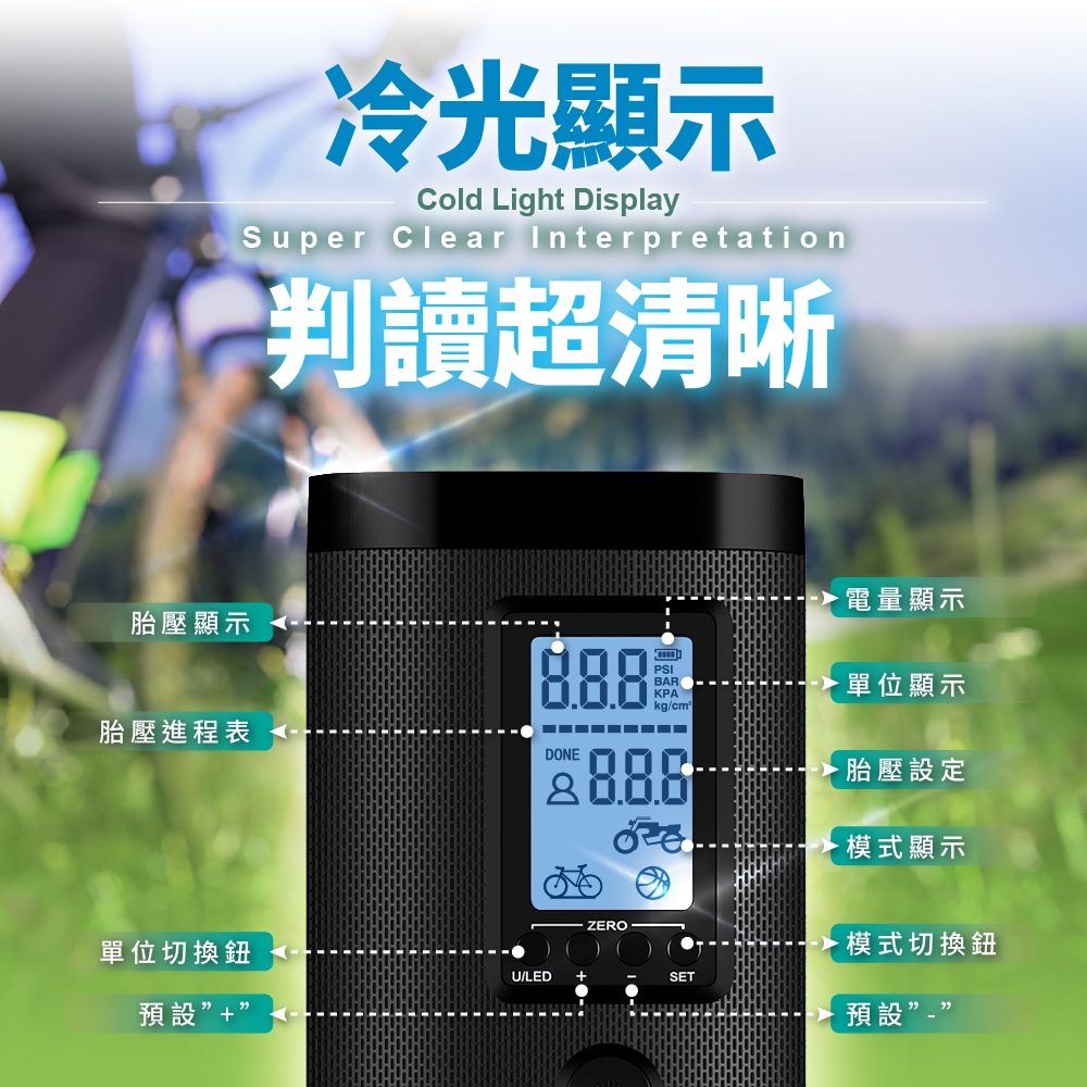 👍充氣壓力2-150PSI,四種單位PSI、BAR、KPA、KG/CM。