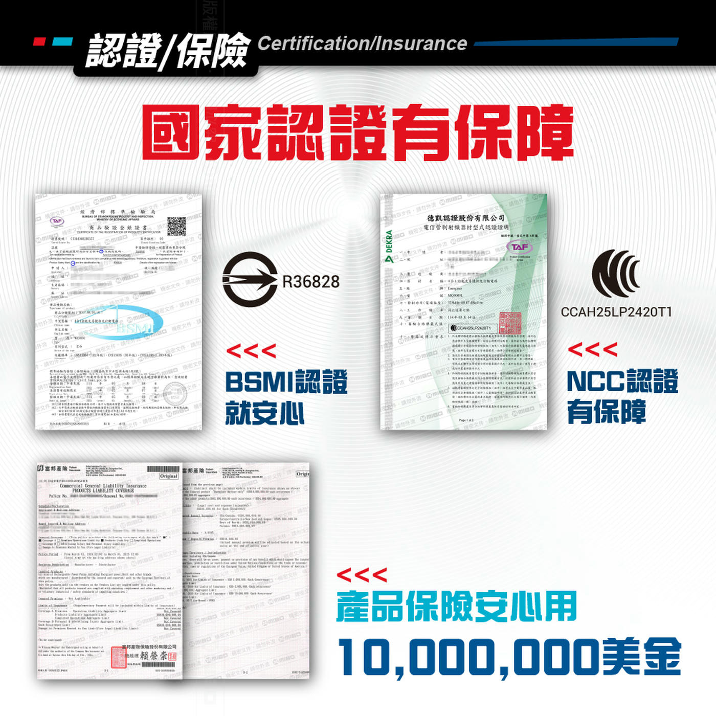 👍多重電路防護機制,智慧充電辨識,調整最佳輸出功率,並保障使用安全,千萬產險。