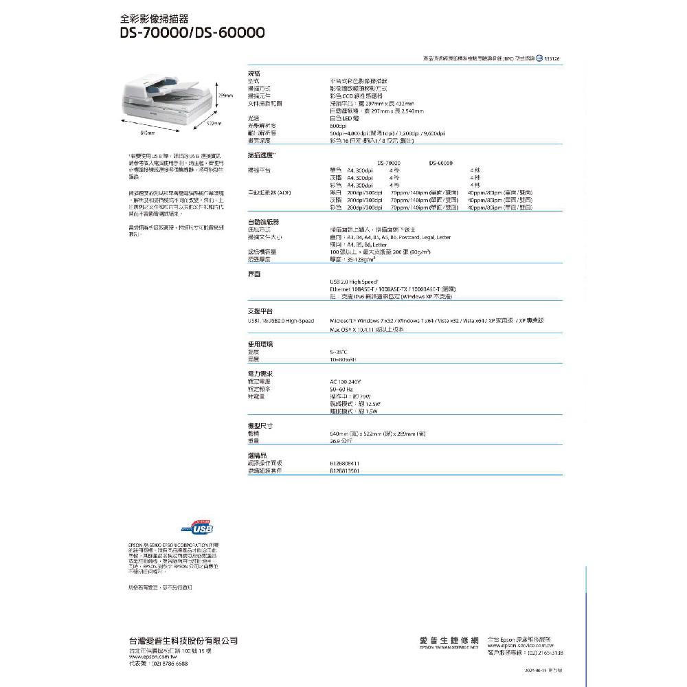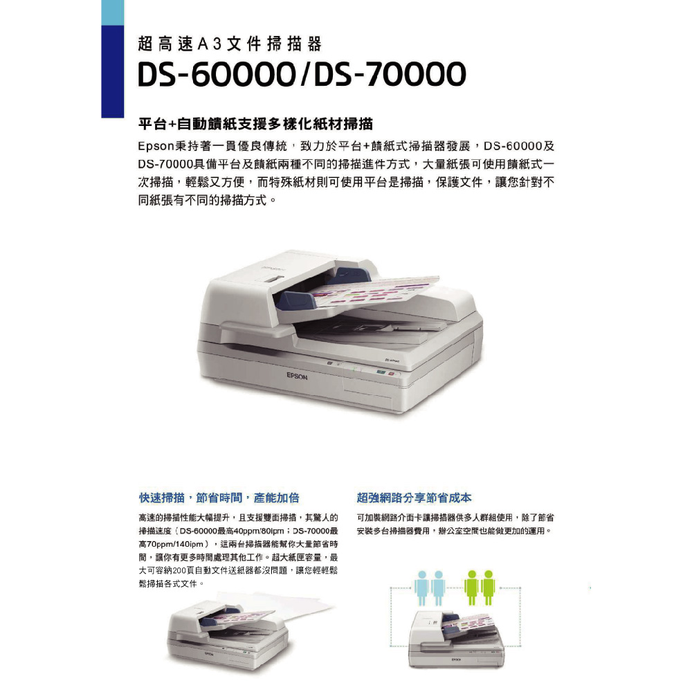 昌運監視器 EPSON 愛普生 DS-70000 超高速A3文件掃描器 超音波進紙偵測