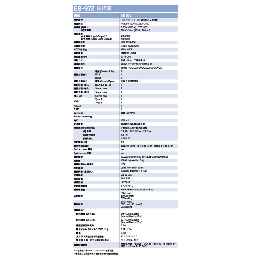 昌運監視器 EPSON 愛普生 EB-972 商用投影機 XGA高解析度