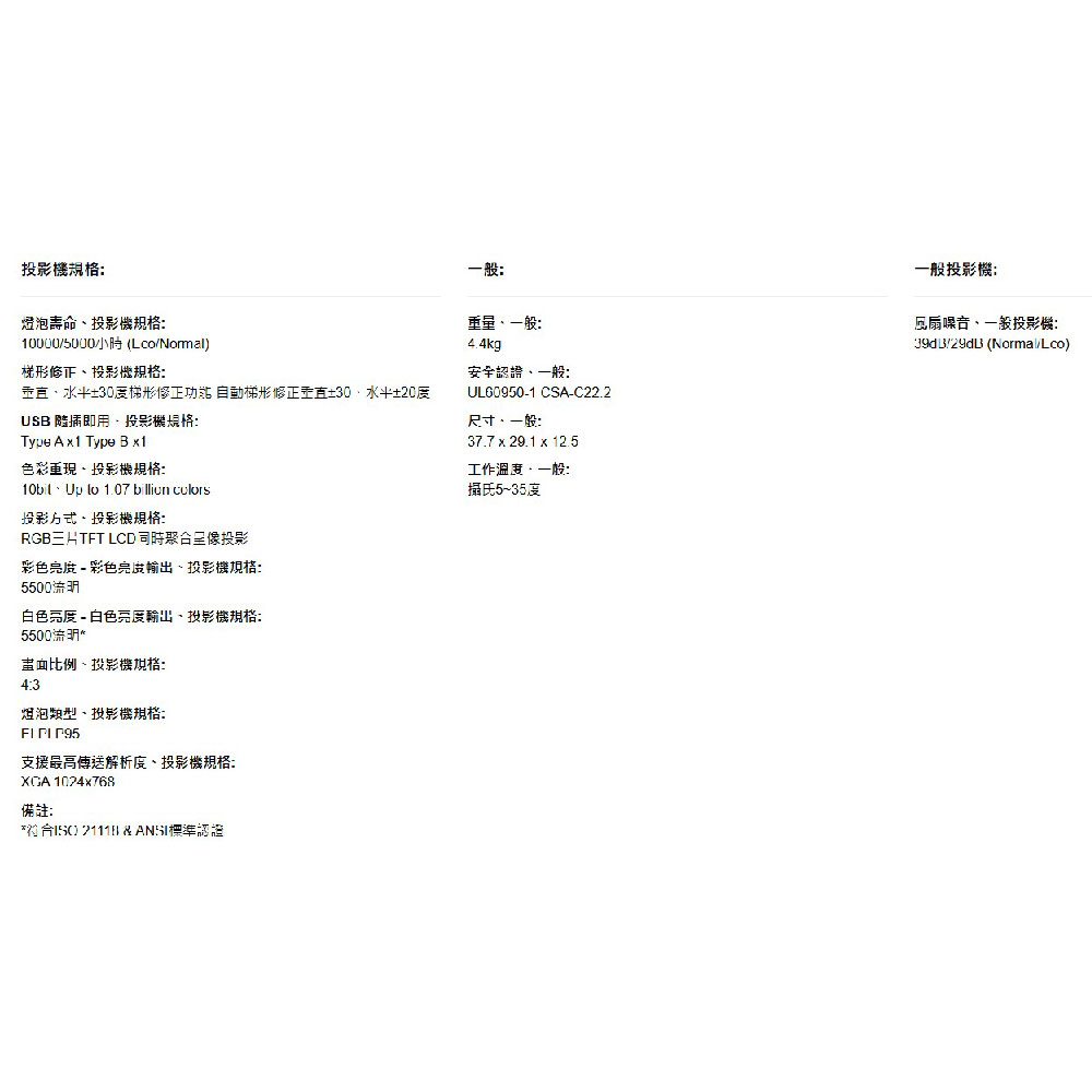 亮:白色亮度 = 彩色亮度最高達5500lm