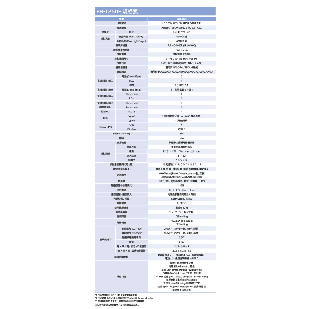 昌運監視器 EPSON 愛普生 EB-L260F 新一代商務雷射投影機 3LCD雷射投影