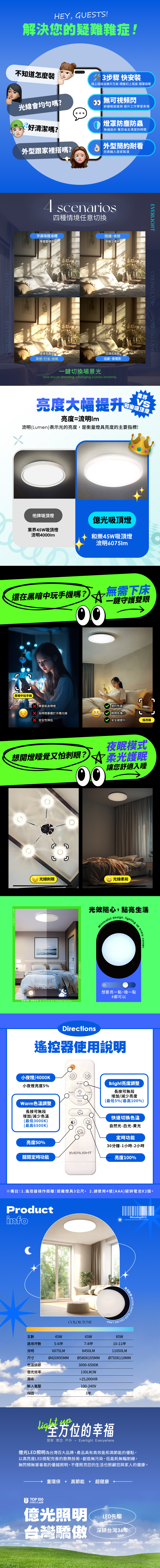 Everlight億光 5-6坪 45W 和樂 遙控/壁切 LED 調光調色吸頂燈(雅緻款)
