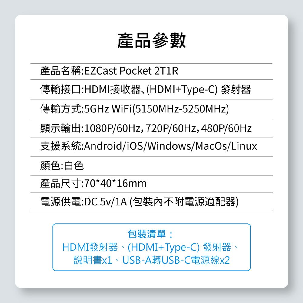 【耀麟國際】EZCast Pocket 2發1收 無線投影傳輸器套組 HDMI+TypeC (三件套)