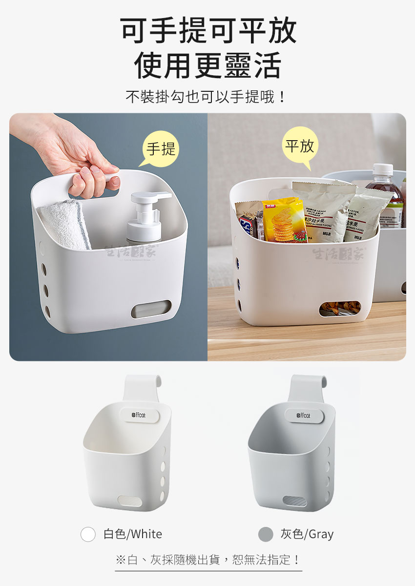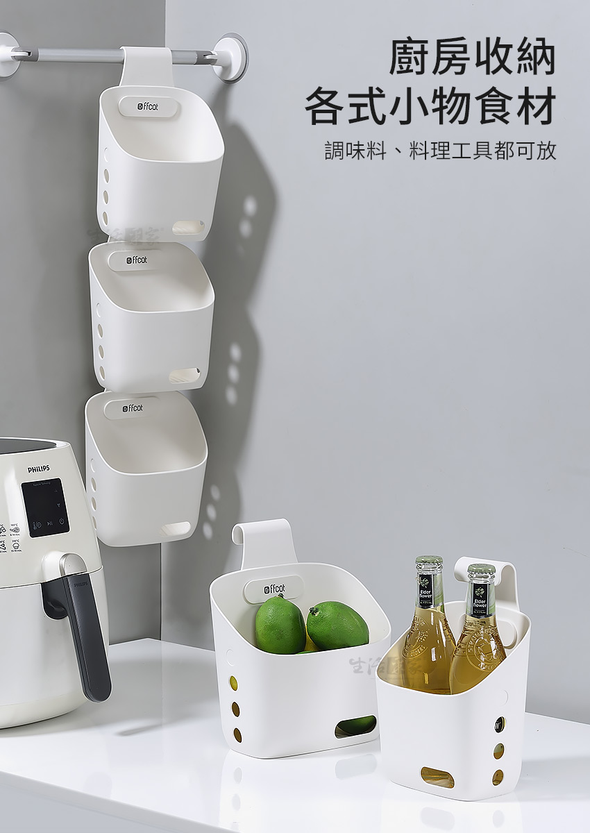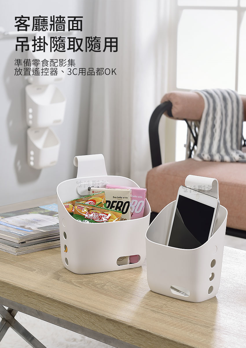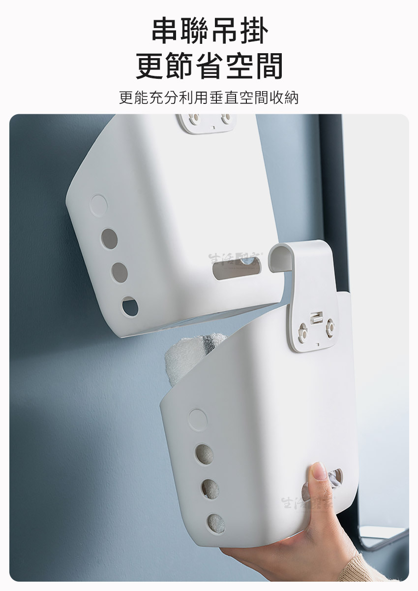 ◆生活與美學的結合,我就是要美美的。◆加寬型掛勾適用2cm內的掛桿,正掛、反掛都可用。◆串連懸掛,減少空間浪費,充份利用壁面垂直空間。◆採用加厚PP耐衝擊塑料,用料好、品質佳、超耐用。◆傾斜式設計,底部瀝水孔,放置物品時也不怕積水。◆側面通風孔,正面識物孔,清楚了解收納物品種類。◆多功能收納,可放置個人物品、廚房小物、浴室用品等。◆居家廚房、浴室或辦公室、倉庫、民宿、營業場所適用。