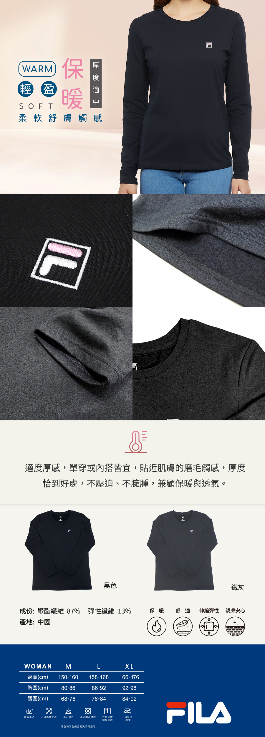 FILA女冬日暖感圓領長袖-M(顏色隨機出貨)