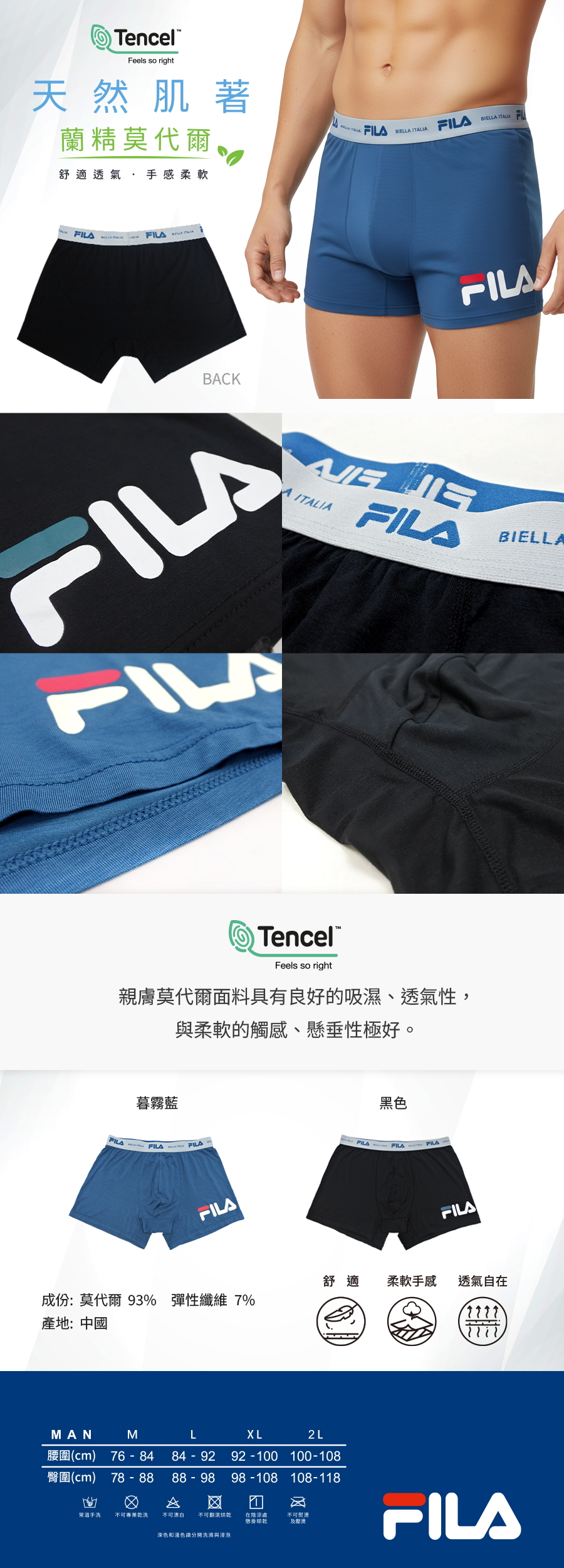 FILA男雲感莫代爾平口褲-XL(顏色隨機出貨)