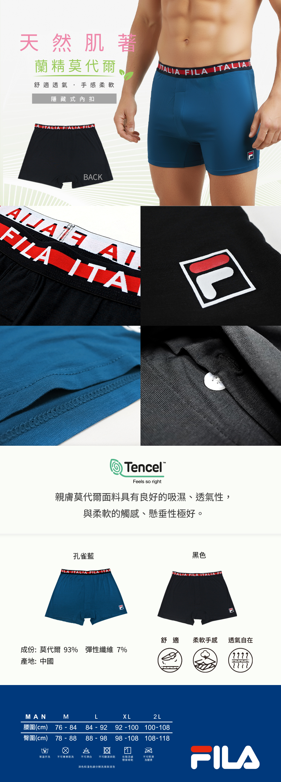 FILA男自在莫代爾釦式平口褲-2L(顏色隨機出貨)