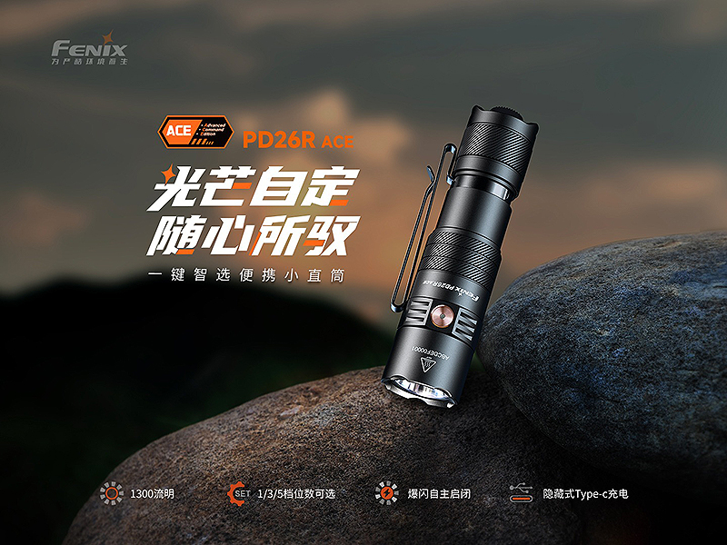 (以下為原廠提供參考數據,非絕對)品名:FENIX PD26R ACE 一鍵智選便攜小直筒型號:#PD26R ACE