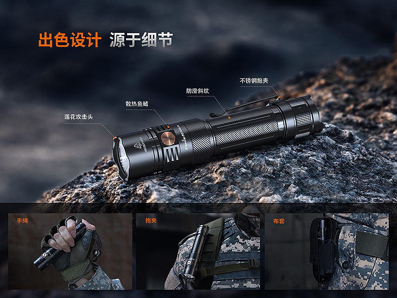 (以下為原廠提供參考數據,非絕對)品名:FENIX PD36R ACE 三合一戰術直筒手電型號:#PD36R ACE