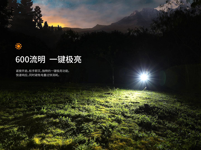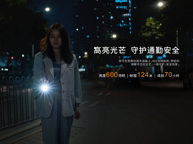 ◎最高亮度600流明,最遠射程124米◎使用1顆Luminus SST20 LED,壽命50000小時◎內置1塊800mAh鋰聚合物電池◎旋轉隱藏式Type-C充電介面◎獨立金屬按鍵進行開關機和換檔◎具備一鍵極亮功能◎使用高效率的全反射透鏡◎採用A6061-T6鋁合金製造◎表面進行了HAIII硬質陽極氧化抗磨處理◎尺寸(±10%):79(筒長)× 19.3(筒頭直徑)× 18.4(筒身直徑) 毫米◎重量(±10%):45克