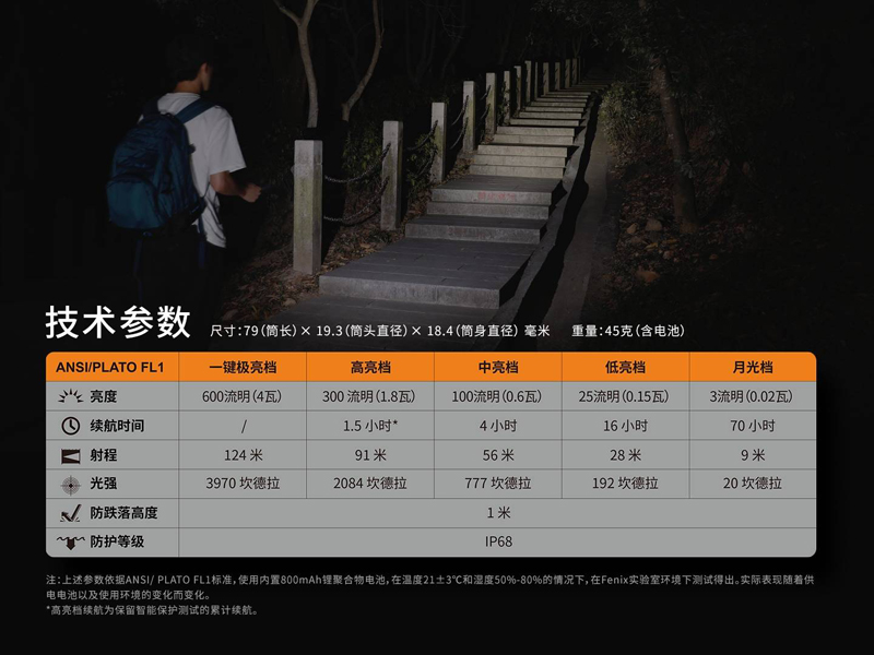 (以下為原廠提供參考數據,非絕對)品名:FENIX E09R 超亮隨身EDC手電筒型號:E09R