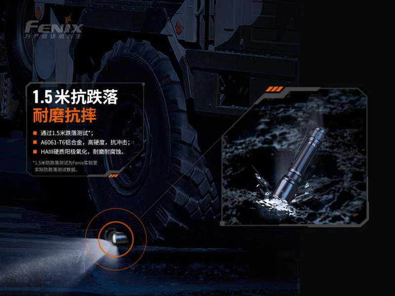 ◎最高亮度3000流明,最遠射程475米◎使用1顆Luminus SFT70 LED,壽命50000小時◎標配1節Fenix ARB-L21-5000 V2.0鋰離子電池◎採用APF先進脈衝頻率傳輸系統,盡顯戰術優勢◎戰術雙尾按控制,快速實現一觸即亮和一鍵爆閃◎機身隱藏式Type-C介面,充電快速◎內部雙彈簧結構,劇烈衝擊下依舊穩定照明◎採用A6061-T6鋁合金材質製造◎表面進行了HAIII硬質陽極氧化抗磨處理◎尺寸(±10%):152(筒長)×34(筒頭直徑)×25.4(筒身直徑)毫米◎重量(±10%):204克(含電池)