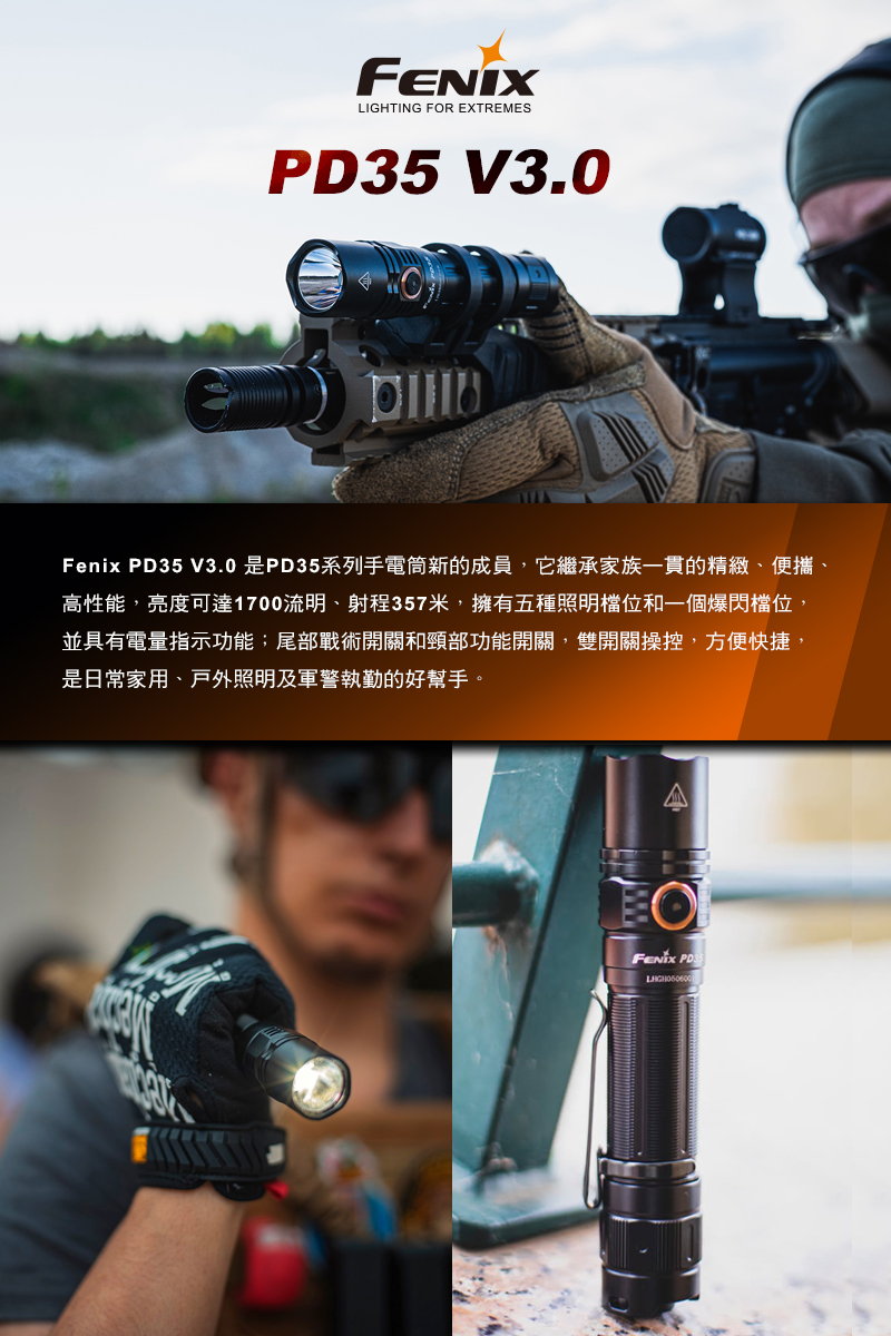 [FENIX] 新世代 戰術小直 1700流明 357米射程 戰術手電筒/PD35 V3.0
