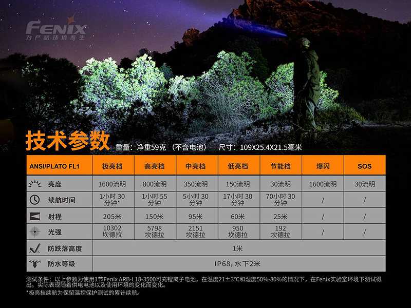 [FENIX] 1600流明 205米射程 輕巧 戰術手電筒/LD30