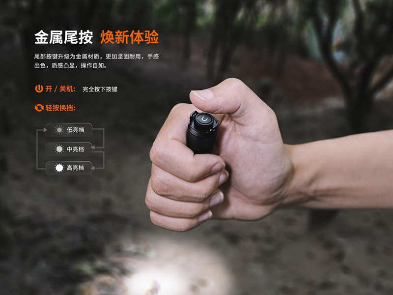 ◎最高亮度200流明,最遠射程78米◎使用1顆Luminus SST20 LED,壽命50000小時◎標配1節AA電池◎零待機電流設計,安全節能◎尾部單開關設計,單手即可快速完成開機及換擋操作◎尾部開關帶磁吸功能,可吸附鐵質表面,有效解放雙手◎雙向抱夾設計和尾部倒立功能,滿足多種場景需求◎採用A6061-T6鋁合金材料製造◎表面進行了HAIII硬質陽極氧化抗磨處理◎尺寸(±10%):81.5(筒長)×19.3(筒頭直徑)×17.4(筒身直徑)毫米◎重量(±10%):53.9克(含電池)