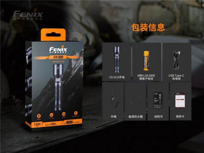 (以下為原廠提供參考數據,非絕對)品名:FENIX C6 V3.0 高性能直充作業手電筒型號:#C6 V3.0