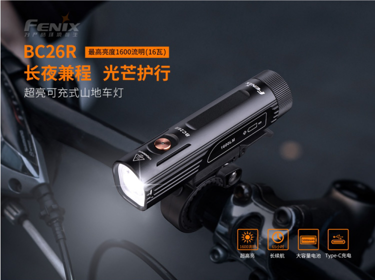 [FENIX]MAX Lumens 1600流明 超亮可充式 腳踏車燈 169米射程/BC26R