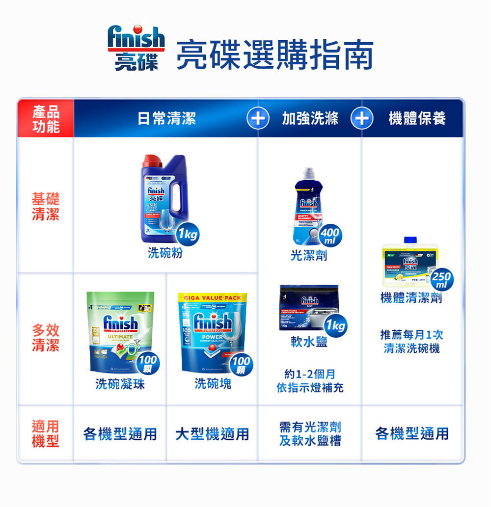 [finish 亮碟] 洗碗機全效合一洗碗塊100顆+洗碗機機體清潔劑檸檬250mlx2(共3入組)