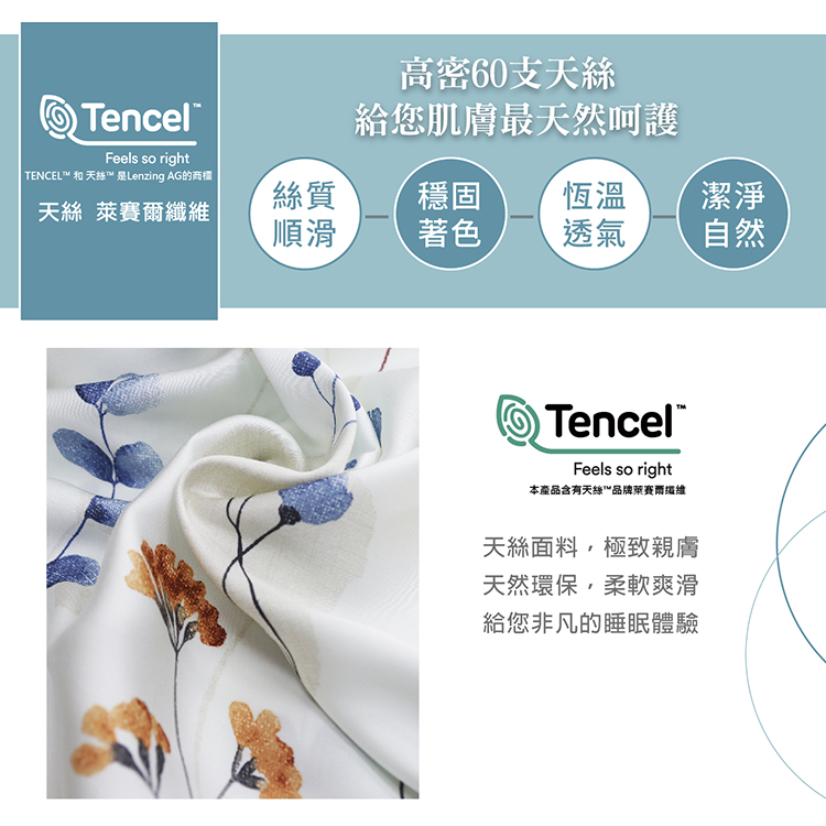★材質:表布:100%萊賽爾纖維(60支頂級天絲)底布─100%萊賽爾纖維(60支頂級天絲)填充物─100%聚酯纖維(超細纖維)