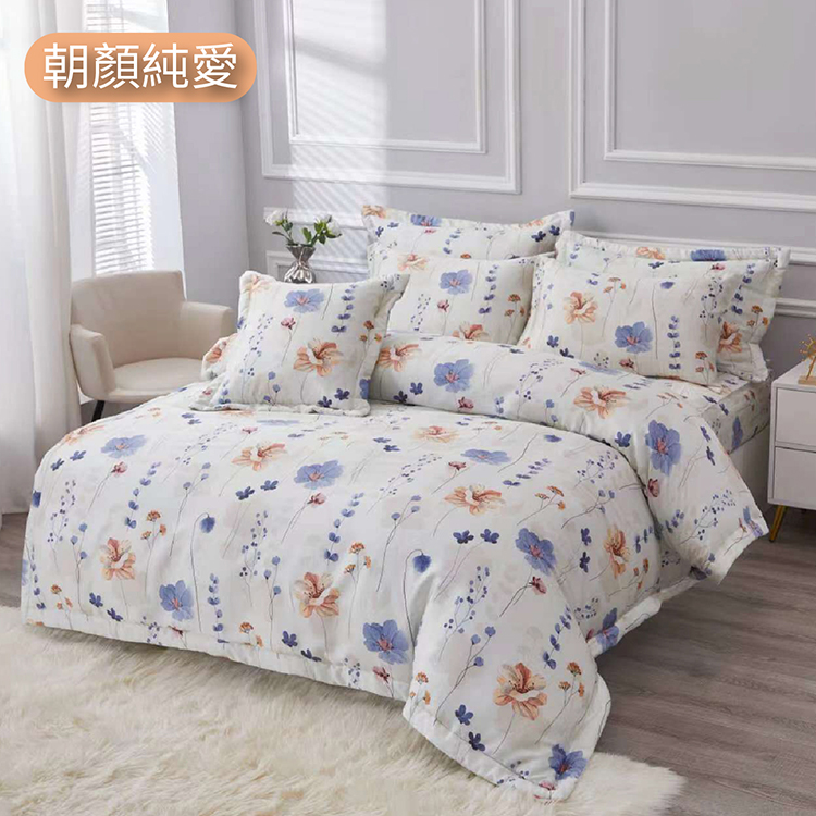【多利寶寢具】FITNESS_100%純天絲頂級60S雙人七件式床罩組-朝顏純愛