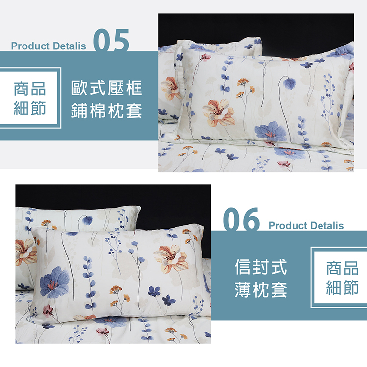 【雙人】鋪棉兩用被套*1件-6x7尺(182x212cm) 、鋪棉床罩*1件-5x6.2尺(152x188cm)、鋪棉枕套*2個(48x75cm) 、薄枕套*2個(48x75cm)、靠墊(含心)*1個