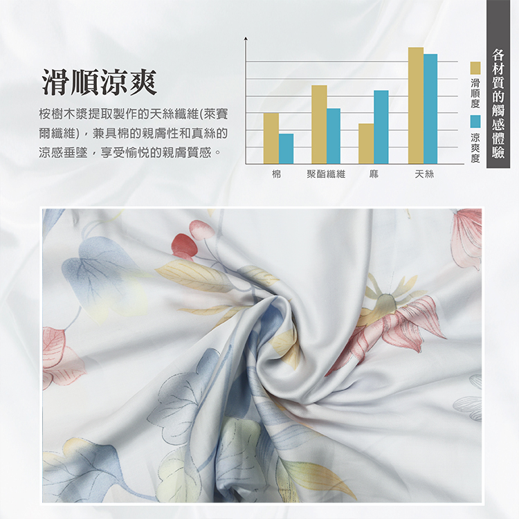 ★材質:表布:100%萊賽爾纖維(60支頂級天絲)底布─100%萊賽爾纖維(60支頂級天絲)填充物─100%聚酯纖維(超細纖維)