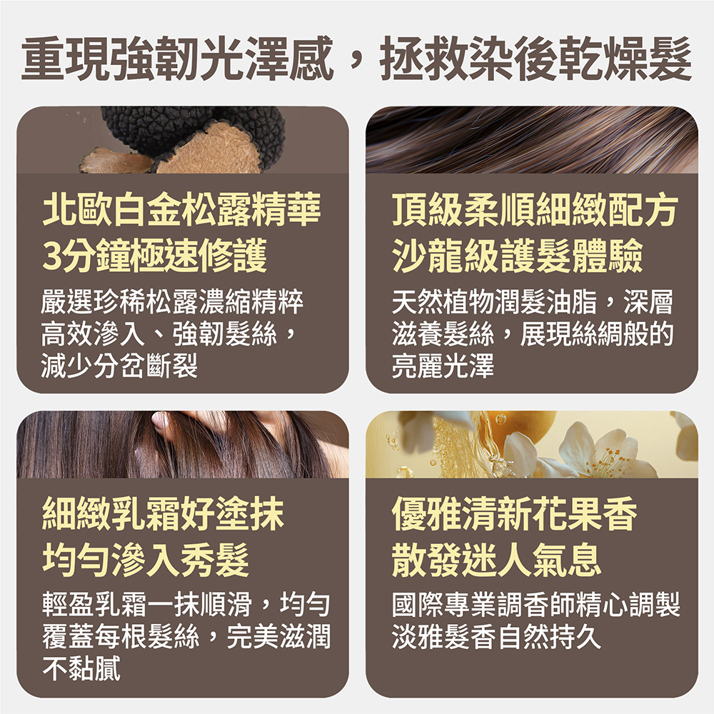 我們的3分鐘強韌奇蹟護髮膜是木質調(添加地中海柏木精油)、帶點清爽果香(檸檬精油),洗後宛若沐浴一場沁人心脾的森林浴。(與洗髮精為同款香氛)