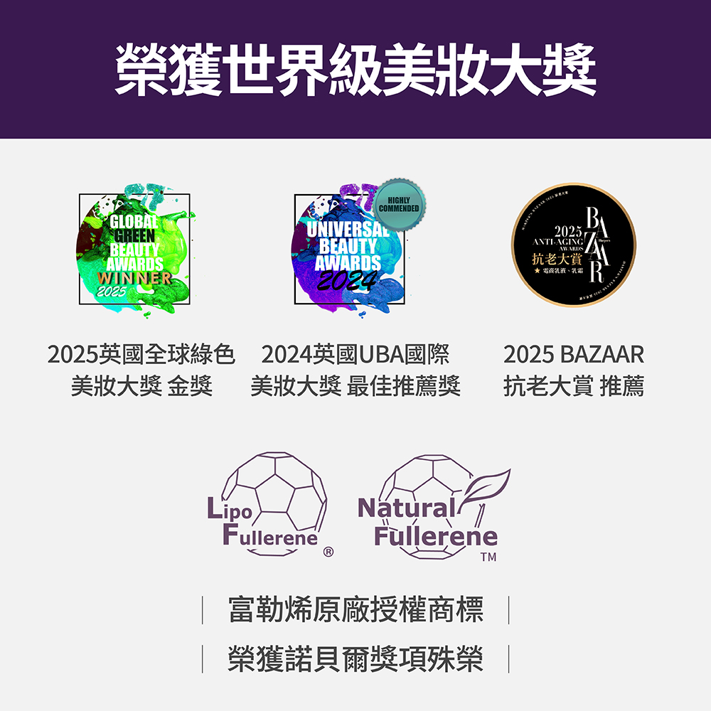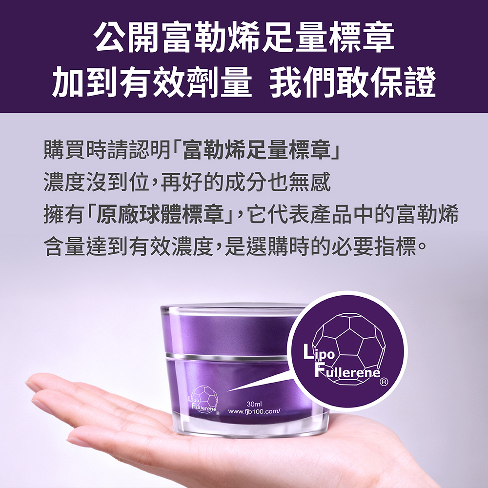 ➤足量添加諾貝爾級抗老成份「L.F.™富勒烯」