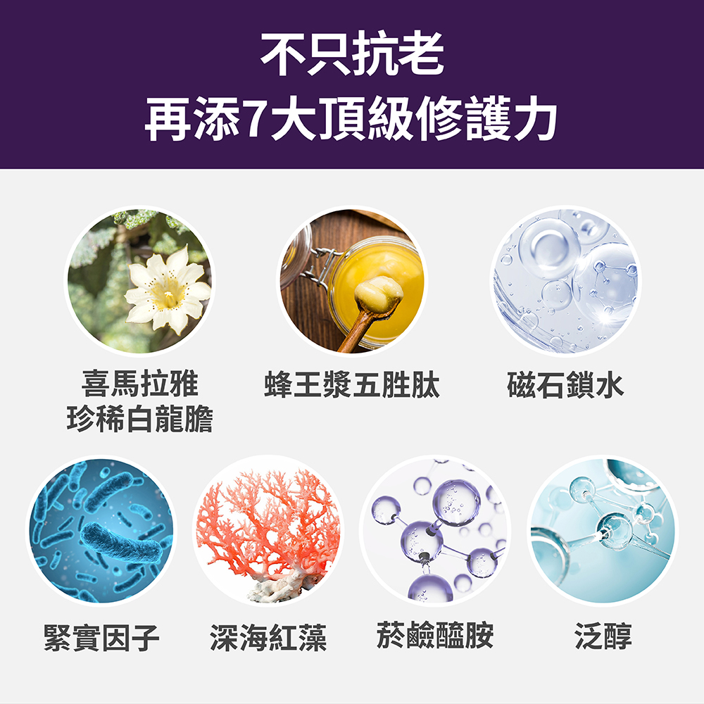 ➤嚴選7大珍稀頂級成分,助攻肌膚更年輕