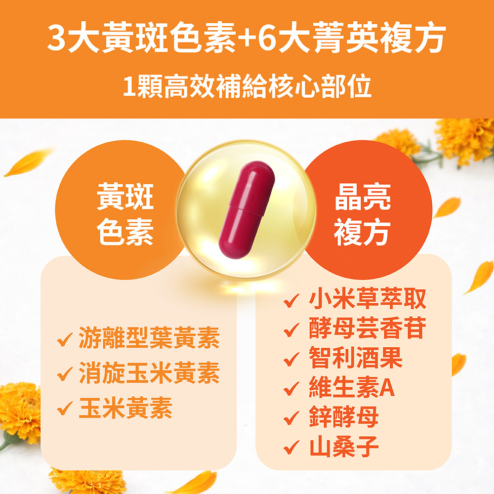➤臨床實證<黃金比例配方> 關鍵高劑量「消旋玉米黃素」10mg