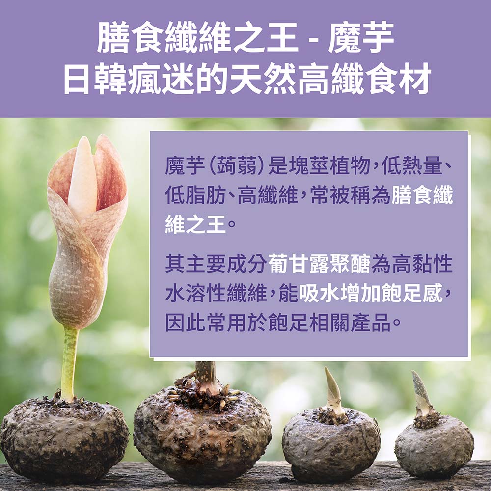 專利魔芋萃取物(精緻蒟蒻粉Glucomannan)。