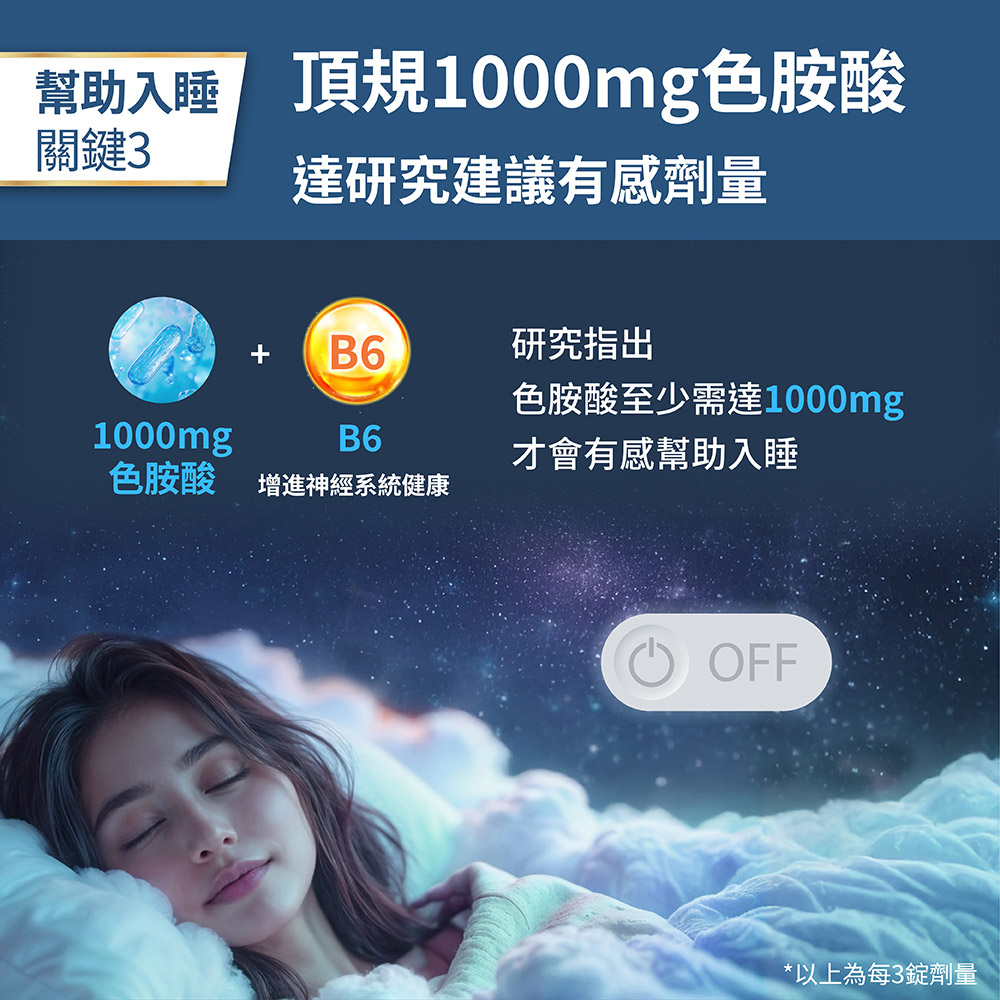 ➤頂配足量1000mg色胺酸(3錠),達國際文獻有感劑量