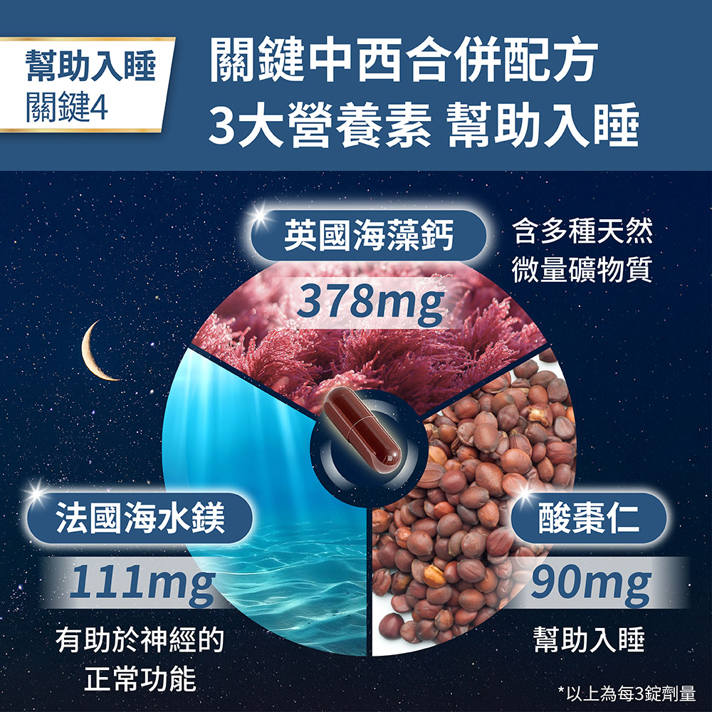 劑型也同步升級,改為錠劑後比原本的膠囊更小、更好吞,打造更科學、更完整的入眠補給配方。
