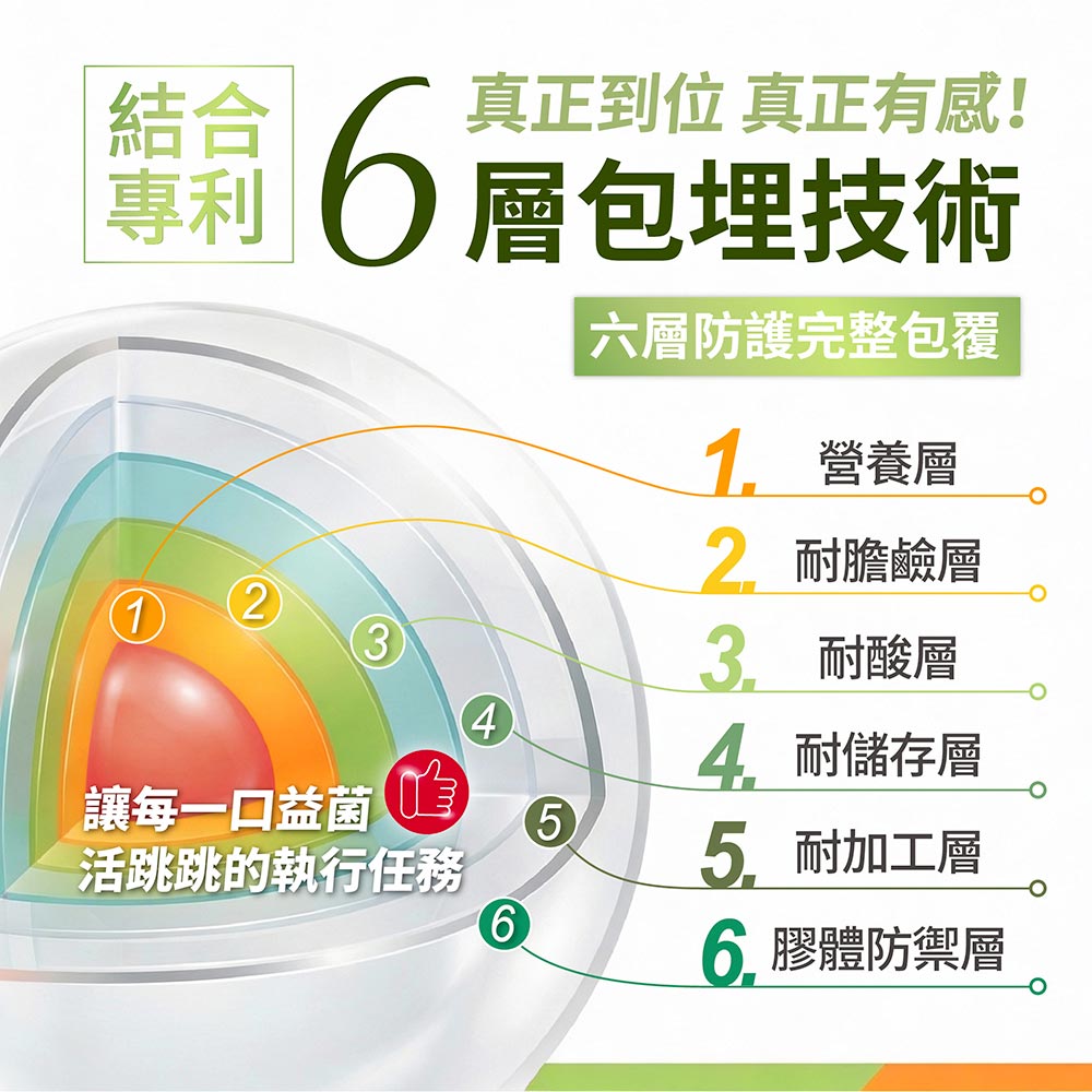 ➤專利6層包埋技術益生菌更穩定