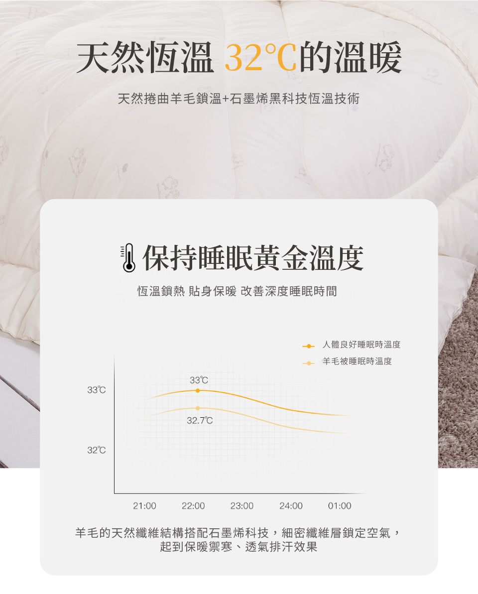 ☆石墨烯x羊毛 全方位溫暖舒適☆黑科技石墨烯 蓄熱保暖☆黃金比例 純淨羊毛填充