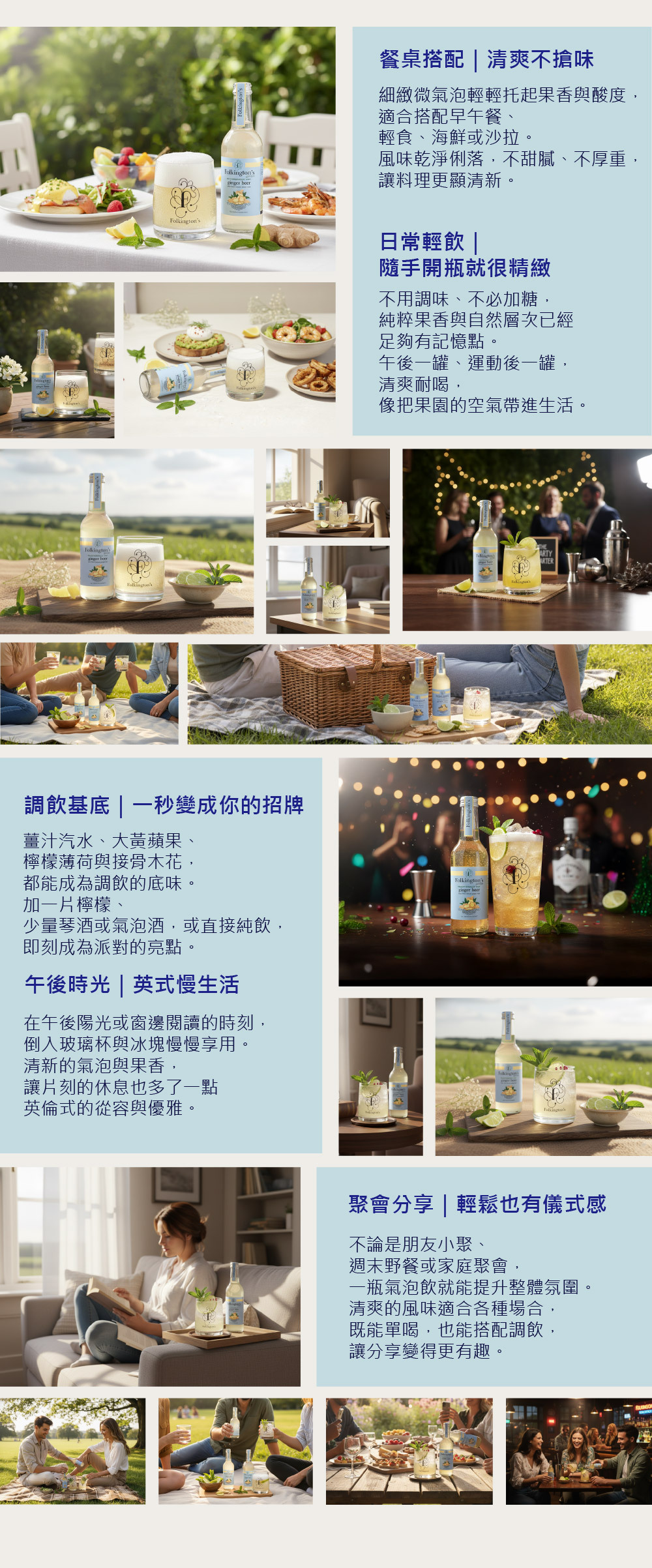 Folkington’s 以經典薑汁汽水的靈魂為底,打造一款辛香純正、層次俐落的英式氣泡飲。