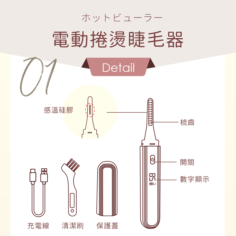 【FUGU】電動捲燙睫毛器 美睫神器-白咖