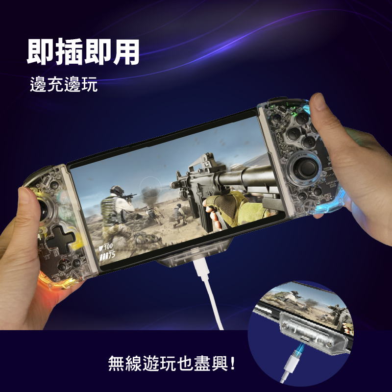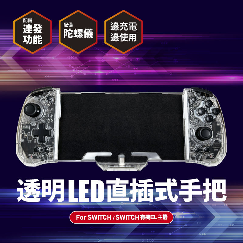 ✨ Switch 透明 LED 直插式手把|炫彩操控