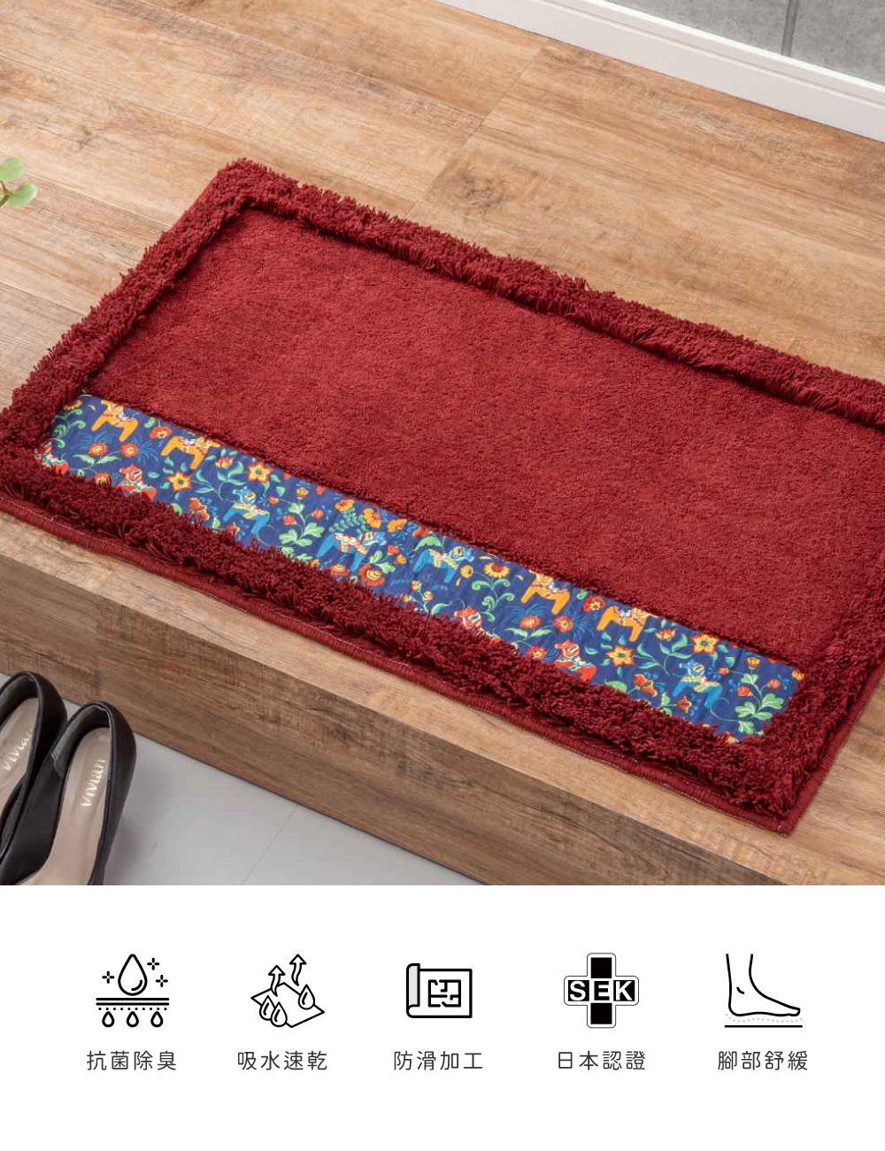 由於是鋪在腳下的地墊,為確保使用衛生,已經過抗菌除臭加工處理。同時吸水速乾機能的特性,讓地墊時刻保持乾爽。
