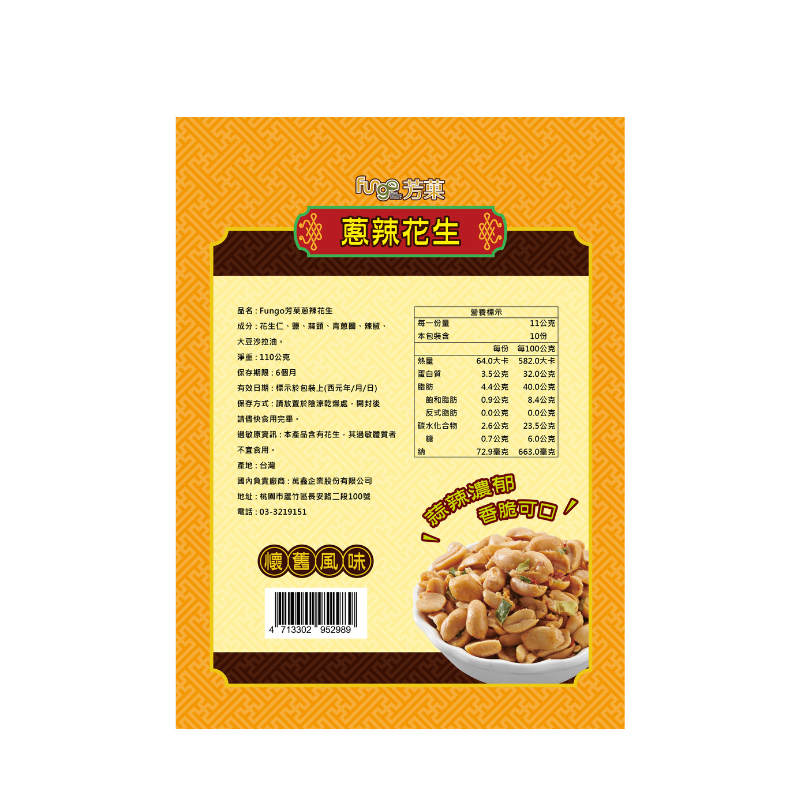 [萬鑫](有效20251007)Fungo芳菓蔥辣花生110g(6包組)