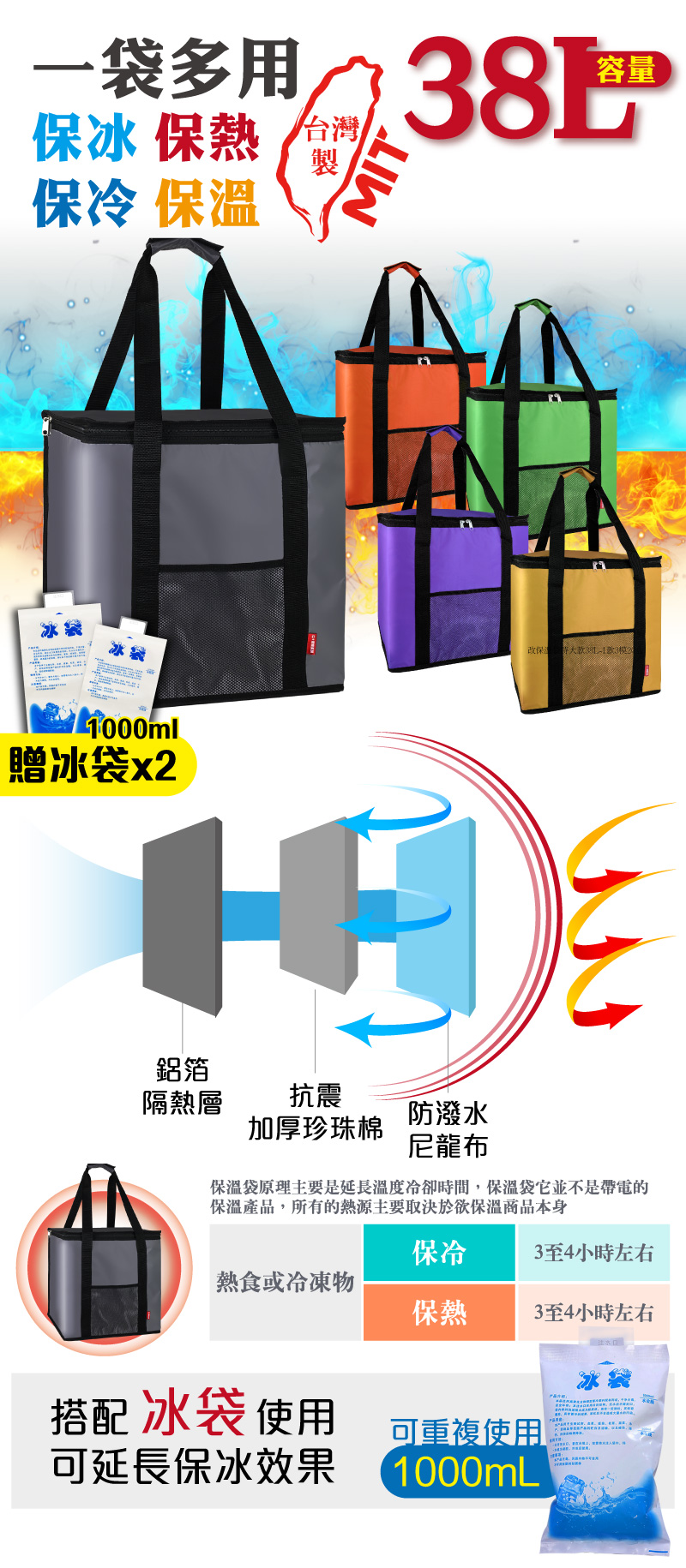 【G+居家】防潑水亮彩保溫保冰袋38L特大款(保溫保冰袋/露營保冷袋/肩背袋/手提環保袋/外送袋/保鮮袋/野餐袋/保溫餐袋/手提袋)