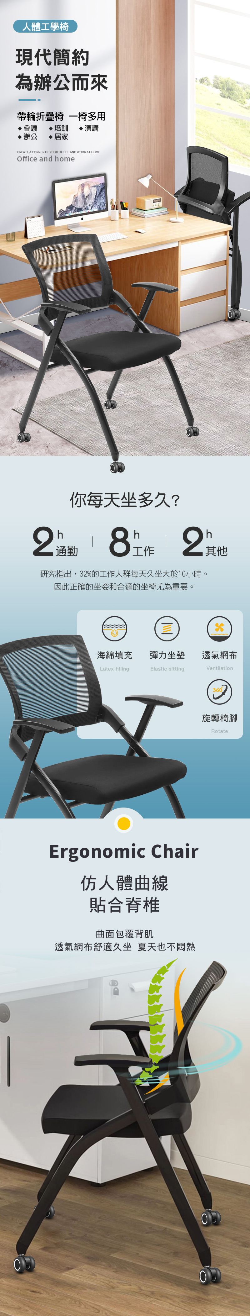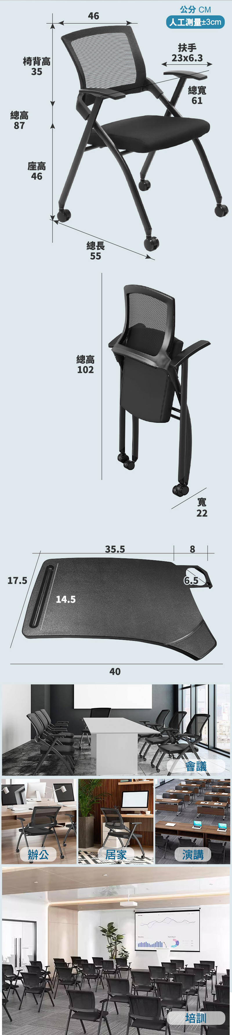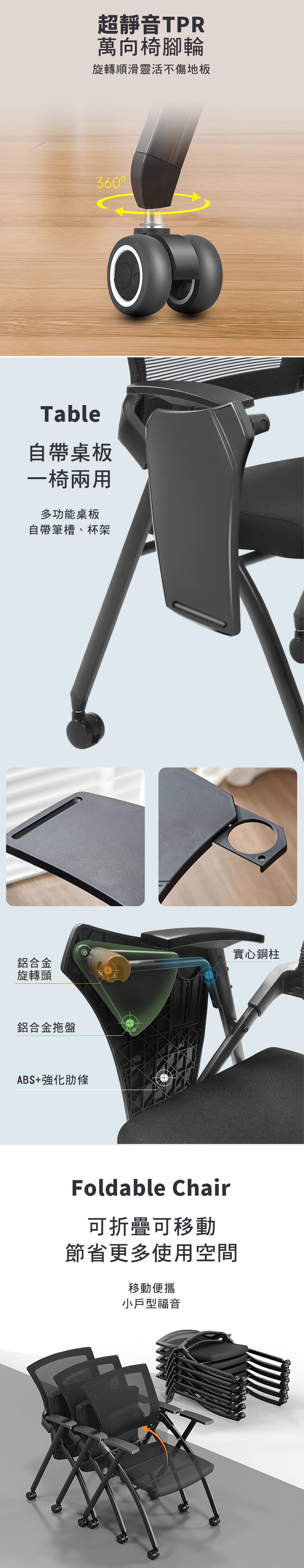 【G+居家】免組裝 舒適靈活折疊會議椅-含2吋TPR輪含桌面