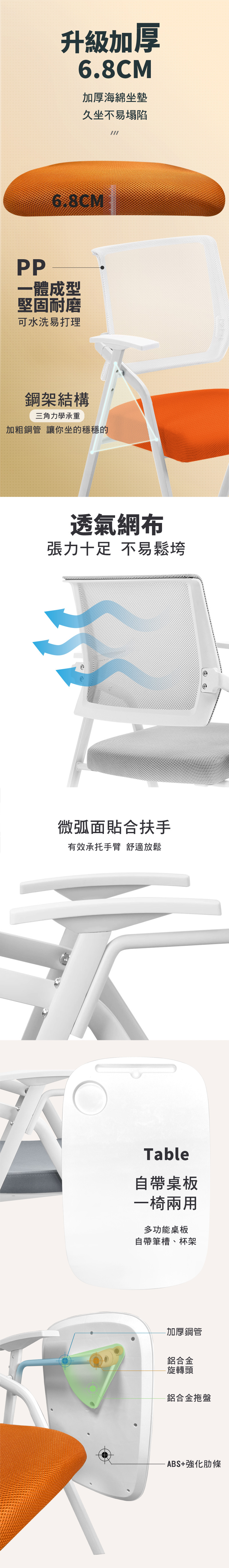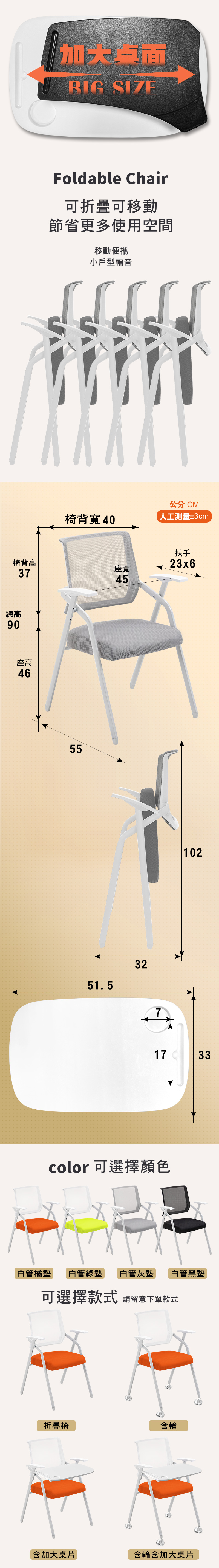 【G+居家】免組裝 舒適靈活折疊會議椅-含加大桌片