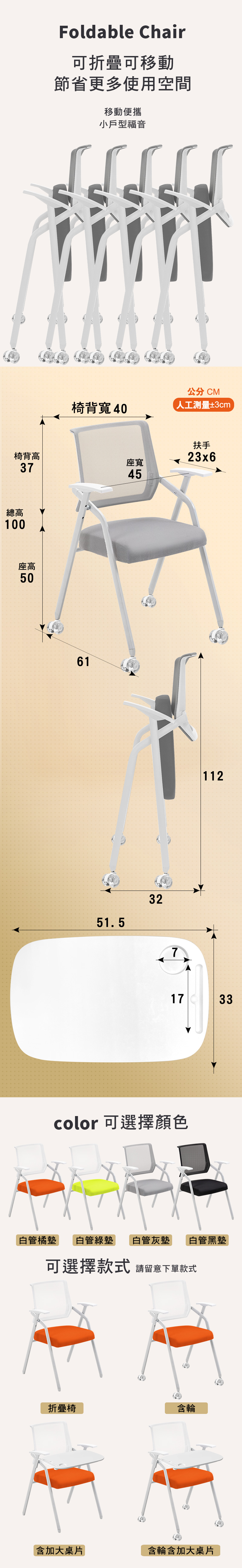 【G+居家】免組裝 舒適靈活折疊會議椅-含輪(2吋晶透水晶白(無飾蓋))含加大桌片
